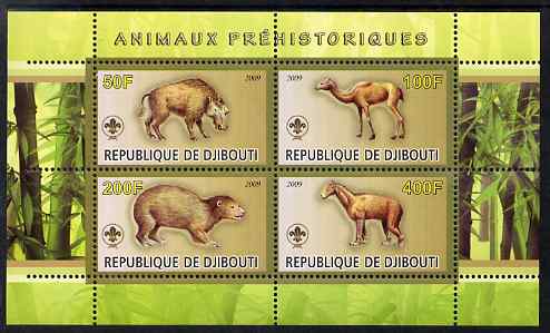 Djibouti 2009 Prehistoric Animals with Scout Logo #1 perf sheetlet containing 4 values unmounted mint