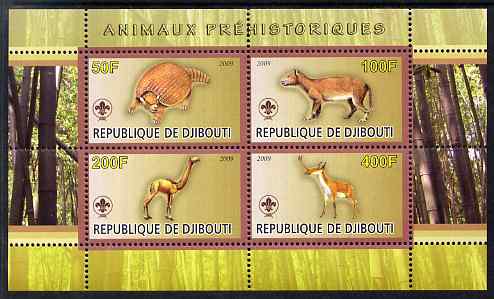 Djibouti 2009 Prehistoric Animals with Scout Logo #2 perf sheetlet containing 4 values unmounted mint