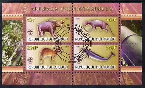 Djibouti 2009 Prehistoric Animals with Scout Logo #3 perf sheetlet containing 4 values fine cto used
