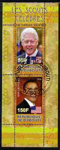 Djibouti 2010 Famous Scouts - Bill Clinton & Barack Obama perf sheetlet containing 2 values fine cto used