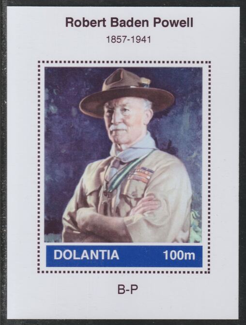 Dolantia (Fantasy) Baden Powell imperf deluxe sheetlet on glossy card (75 x 103 mm) unmounted mint