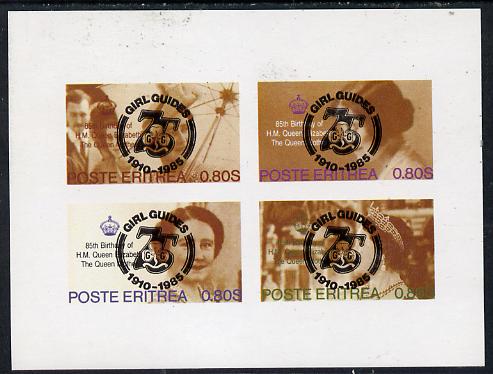 Eritrea 1985 Life & Times of HM Queen Mother imperf set of 4 with Girl Guide 75th Anniversary opt in black