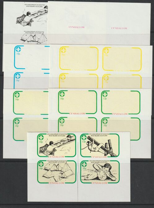 Eynhallow 1982 75th Anniversary of Scouting sheet of 4 values - the set of 7 imperf progressive proofs comprising the 4 individual colours, 2, 3 and all 4 colour composites unmounted mint