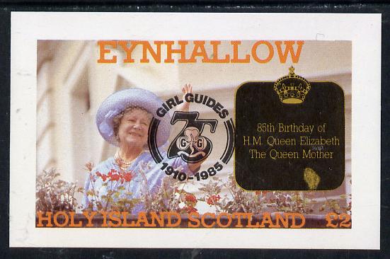 Eynhallow 1985 Life & Times of HM Queen Mother imperf deluxe sheet (£2 value) with Girl Guide 75th Anniversary opt in black unmounted mint