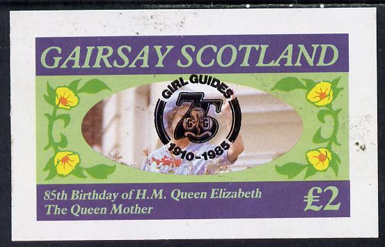 Gairsay 1985 Life & Times of HM Queen Mother imperf deluxe sheet (£2 value) with Girl Guide 75th Anniversary opt in black unmounted mint