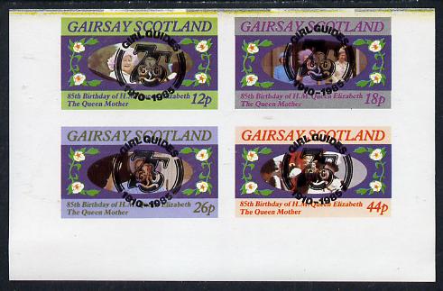 Gairsay 1985 Life & Times of HM Queen Mother imperf set of 4 with Girl Guide 75th Anniversary opt in black unmounted mint