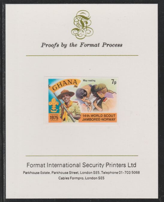 Ghana 1976 World Scout Jamboree 7p Map Reading imperf mounted on Format International proof card as SG 755