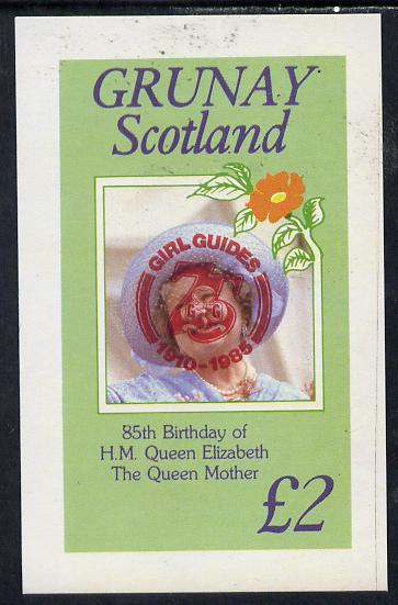 Grunay 1985 Life & Times of HM Queen Mother imperf deluxe sheet (£2 value) with Girl Guide 75th Anniversary opt in red unmounted mint