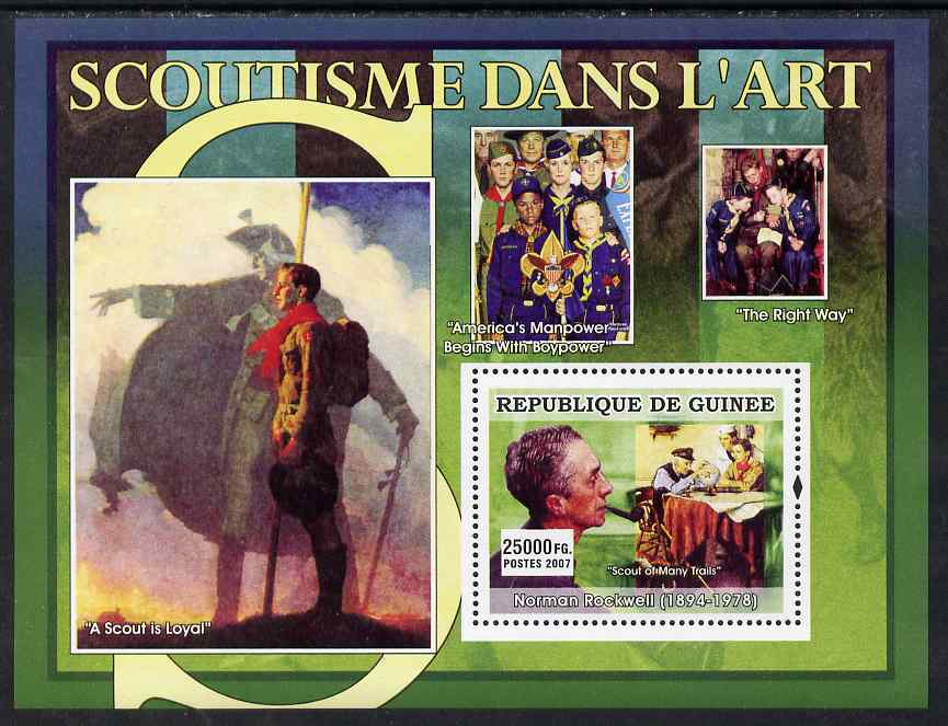 Guinea - Conakry 2007 Scouting in Art (Rockwell & Scout of Many Trails) perf souvenir sheet unmounted mint