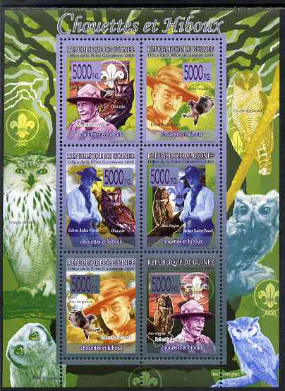 Guinea - Conakry 2009 Owls and Scouts perf sheetlet containing 6 values unmounted mint