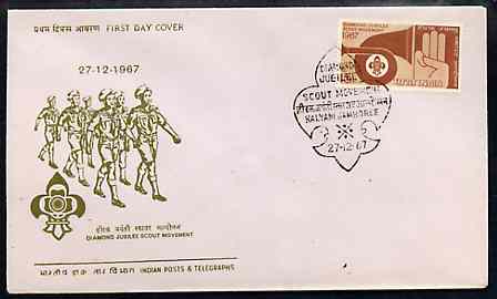 India 1967 60th Anniversary of Scout Movement 15p on illustrated cover with special Diamond Jubilee first day cancel, SG 558