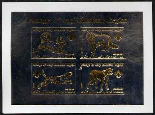 Iraqi Kurdistan Region 2007 Dogs gold on silver imperf deluxe card containing 4 values each with Scout Logo