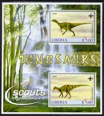Liberia 2005 Dinosaurs perf sheetlet containing 2 values each with Scout Logos unmounted mint