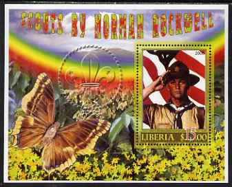 Liberia 2006 Scouts by Norman Rockwell #2 perf m/sheet with Butterfly, unmounted mint