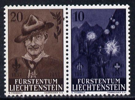 Liechtenstein 1957 50th Anniversary of Scout Movement se-tenant pair unmounted mint, SG 358a