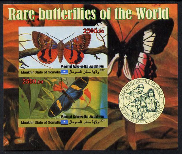 Maakhir State of Somalia 2011 Rare Butterflies #3 (with Scout Badge) imperf sheetlet containing 2 values unmounted mint