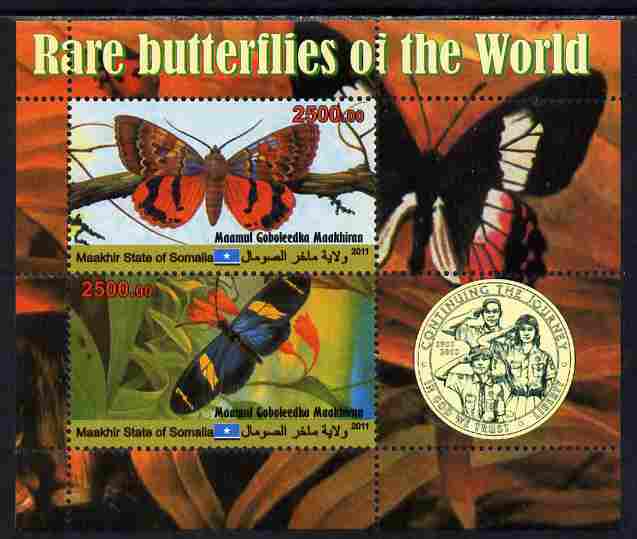 Maakhir State of Somalia 2011 Rare Butterflies #3 (with Scout Badge) perf sheetlet containing 2 values unmounted mint