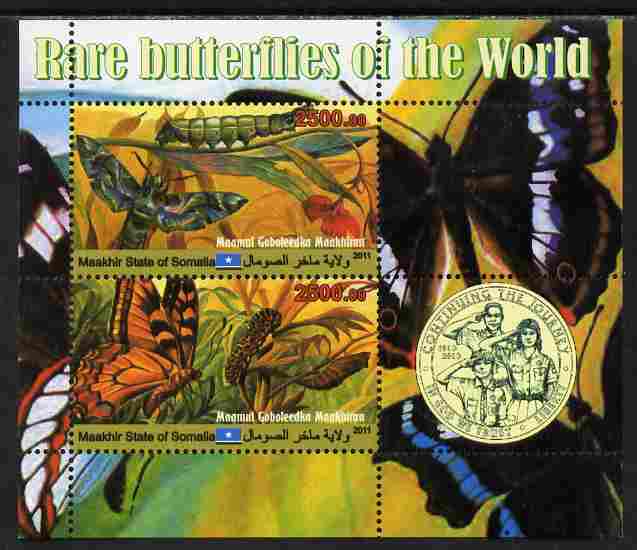 Maakhir State of Somalia 2011 Rare Butterflies #4 (with Scout Badge) perf sheetlet containing 2 values unmounted mint