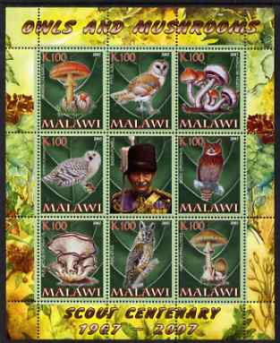Malawi 2007 Owls & Mushrooms perf sheetlet containing 8 values plus label (Scout Centenary) unmounted mint