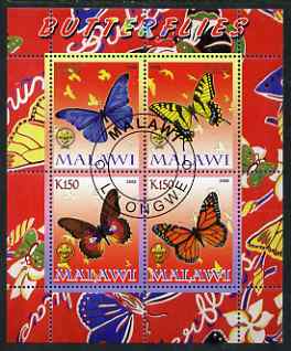 Malawi 2008 Butterflies perf sheetlet containing 4 values, each with Scout logo fine cto used