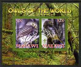 Malawi 2008 Owls of the World perf sheetlet #2 containing 2 values with Scout Logo fine cto used