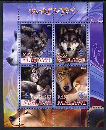 Malawi 2008 Wolves perf sheetlet containing 4 values, each with Scout logo fine cto used