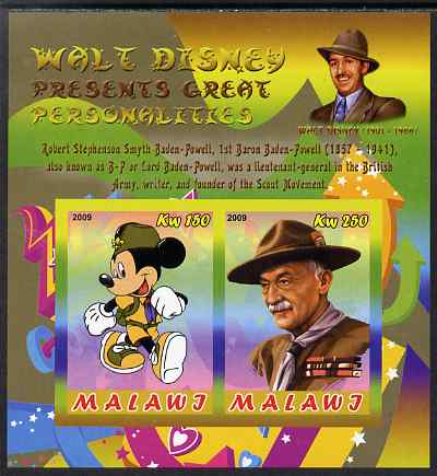 Malawi 2009 Walt Disney Presents Great Personalities - Baden Powell imperf sheetlet containing 2 values unmounted mint