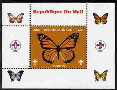 Mali 2010 Butterflies & Scouts individual perf deluxe sheet #1 with double perforations at left unmounted mint. Note this item is privately produced and is offered purely on its thematic appeal
