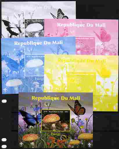 Mali 2010 Fungi #7 s/sheet with Butterflies & Scouts Logo - the set of 5 imperf progressive proofs comprising the 4 individual colours plus all 4-colour composite, unmounted mint