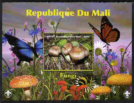 Mali 2010 Fungi #9 perf s/sheet with Butterflies & Scouts Logo unmounted mint. Note this item is privately produced and is offered purely on its thematic appeal