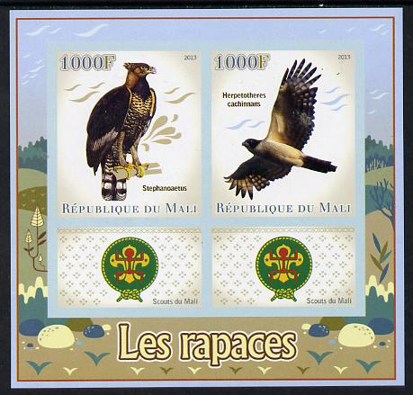 Mali 2013 Birds of Prey imperf sheetlet containing two values & two labels showing Scouts Badge unmounted mint