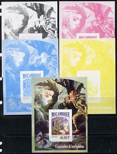 Mozambique 2013 Scouting & Butterflies #5 deluxe sheet - the set of 5 imperf progressive proofs comprising the 4 individual colours plus all 4-colour composite, unmounted mint