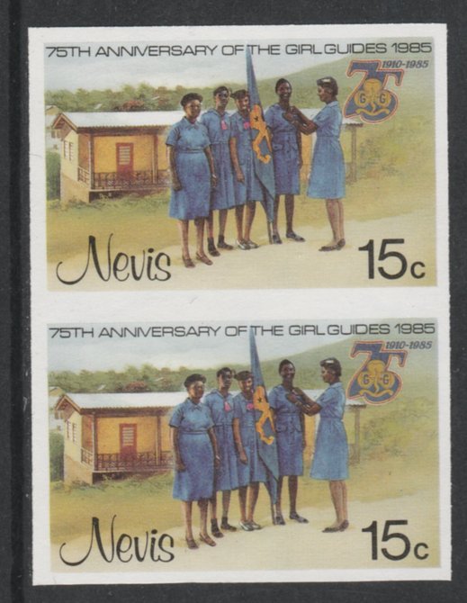 Nevis 1985 Girl Guides - Guides & Headquarters 15c imperf pair unmounted mint as SG 293