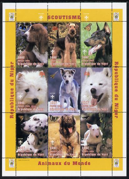 Niger Republic 1998 Animals of the World #4 (Dogs) perf sheetlet containing 9 x 100f values each with Scouts logo unmounted mint. Note this item is privately produced and is offered purely on its thematic appeal Scott #1009