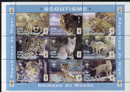 Niger Republic 1998 Animals of the World - Big Cats perf sheetlet containing 9 values (each with Scouts Logo) unmounted mint. Note this item is privately produced and is offered purely on its thematic appeal