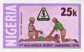 Nigeria 1977 First All-Africa Scout Jamboree - original hand-painted artwork for 25k value (Scouts applying Artificial Respiration) by unknown artist, on board 8.5" x 5"