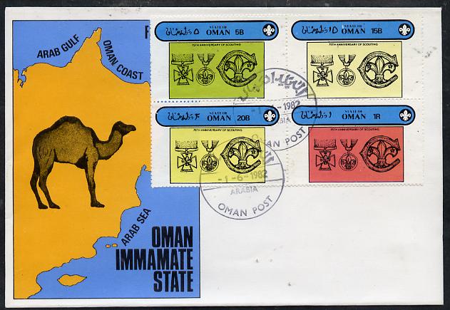 Oman 1982 75th Anniversary of Scouting perf set of 4 on cover with first day cancel
