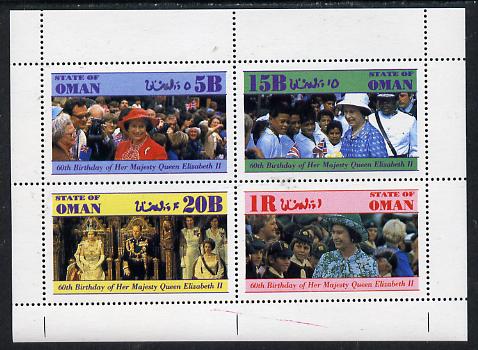 Oman 1986 Queen's 60th Birthday perf set of 4 (1R value shows Cub-Scouts in crowd) unmounted mint