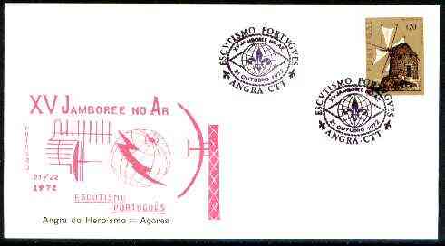Portugal 1972 illustrated cover (Aerials) for 15th Angra Scout Jamboree, 20c Windmill stamp with special cancel