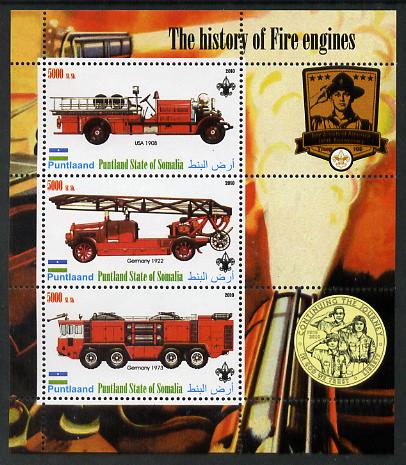Puntland State of Somalia 2010 History of Fire Engines #2 (with Scout Logo) perf sheetlet containing 3 values unmounted mint