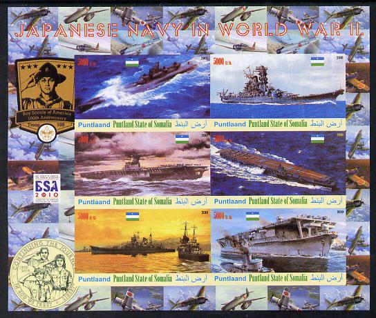 Puntland State of Somalia 2010 Japanese Navy in Second World War #1 imperf sheetlet containing 6 with Scout badges values unmounted mint