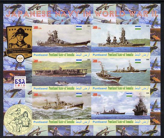 Puntland State of Somalia 2010 Japanese Navy in Second World War #2 imperf sheetlet containing 6 with Scout badges values unmounted mint