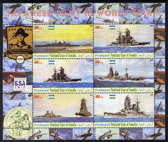 Puntland State of Somalia 2010 Japanese Navy in Second World War #3 perf sheetlet containing 6 with Scout badges values unmounted mint