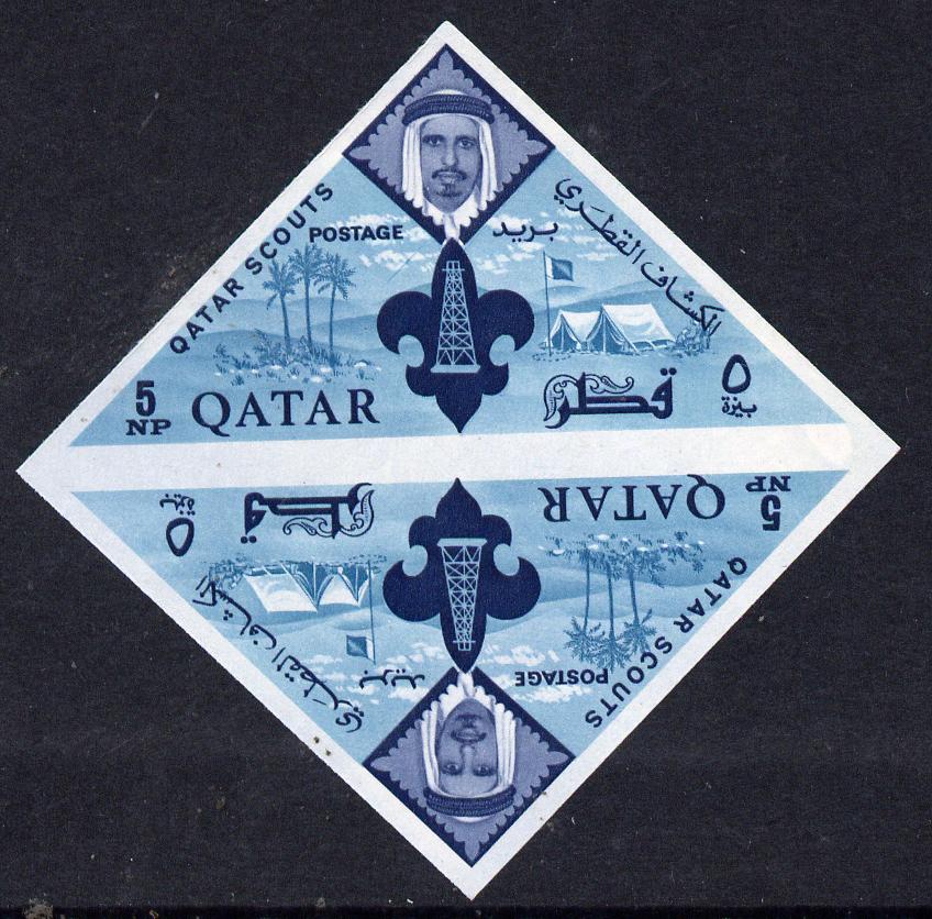 Qatar 1965 Scouts 5np triangular imperf pair from limited printing unmounted mint, as SG 58