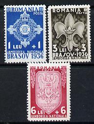 Rumania 1936 National Scout Jamboree set of 3 unmounted mint, SG 1337-39, Mi 516-18