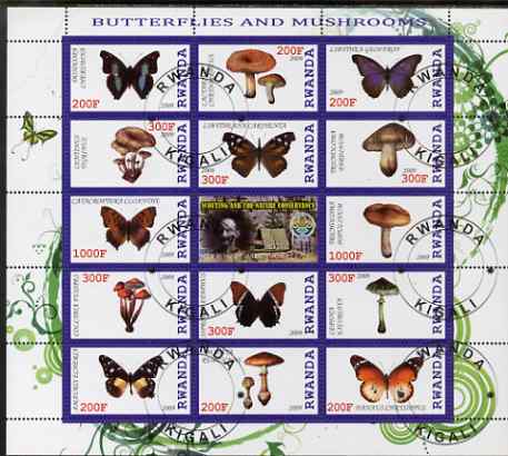Rwanda 2009 Butterflies & Fungi perf sheetlet containing 14 values plus label showing Baden Powell, fine cto used