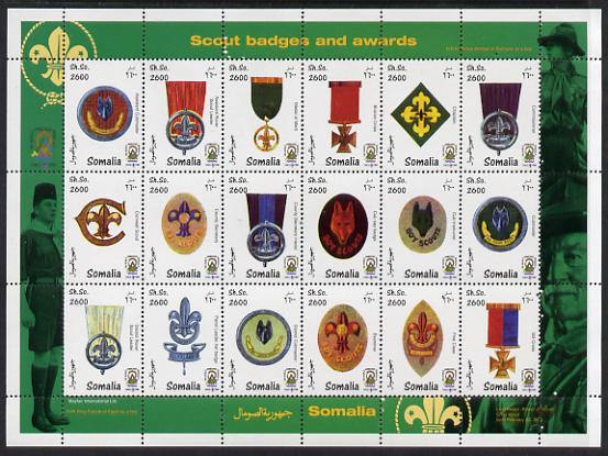 Somalia 1999 Scout Badges & Awards perf sheetlet containing 18 values unmounted mint. Note this item is privately produced and is offered purely on its thematic appeal, it has no postal validity