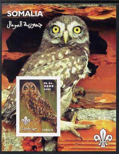 Somalia 2002 Owls #1 imperf s/sheet with Scouts Logo, unmounted mint. Note this item is privately produced and is offered purely on its thematic appeal