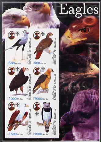 Somalia 2003 Eagles large imperf sheetlet containing set of 6 values each showing Baden Powell & Scout logo unmounted mint. Note this item is privately produced and is offered purely on its thematic appeal