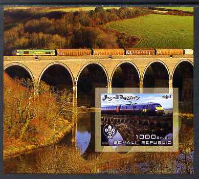 Somalia 2006 Modern Trains #2 imperf souvenir sheet with Scout Logo unmounted mint